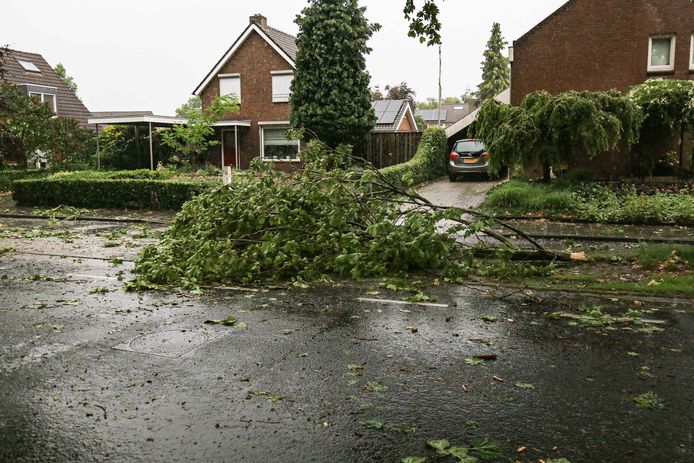 De oprit van het huis lag bezaaid met brokstukken door dakpannen die naar beneden vielen noodweer. Noodweer nederland is een officieel weerstation gevestigd te alkmaar nhn.